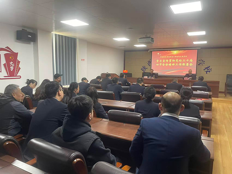 为深入学习宣传贯彻党的二十届四中全会精神,切实把全体教职工的思想和行动统一到党中央决策部署上来,11月24日我校召开专题工作部署会,全面安排落实学习宣传贯彻全会精神各项工作。全体教职工参会,会议由党总支副书记郭康选主持。